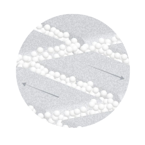 Die Kombination aus rhombenförmig geschnittenem Polyurethanschaum mit EPP-Kügelchen schafft eine ideale Füllungsalternative. Hohe punktelastische Anpassungsfähigkeit verbindet sich hier mit robusten Pflegeeigenschaften.