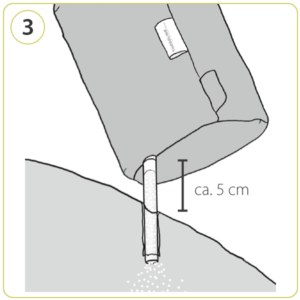 a) bis zur Markierung in Nachfüllpackung (ca. 5 cm)