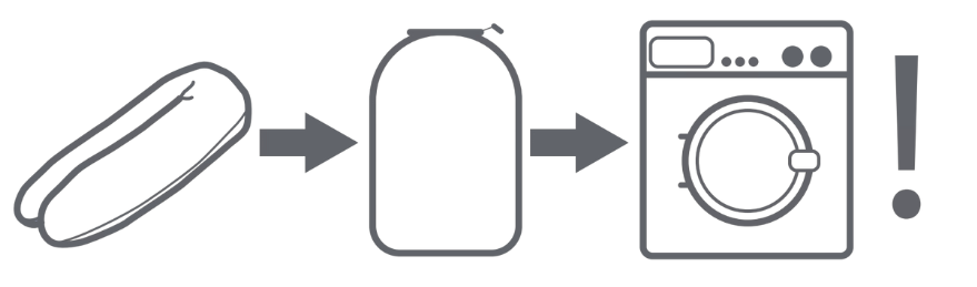 Außenbezüge auf links gedreht und mit geschlossenem Reißverschluss waschen (ca. 10 cm offen lassen). Nicht zusammen mit andersfarbiger Wäsche waschen oder trocknen.